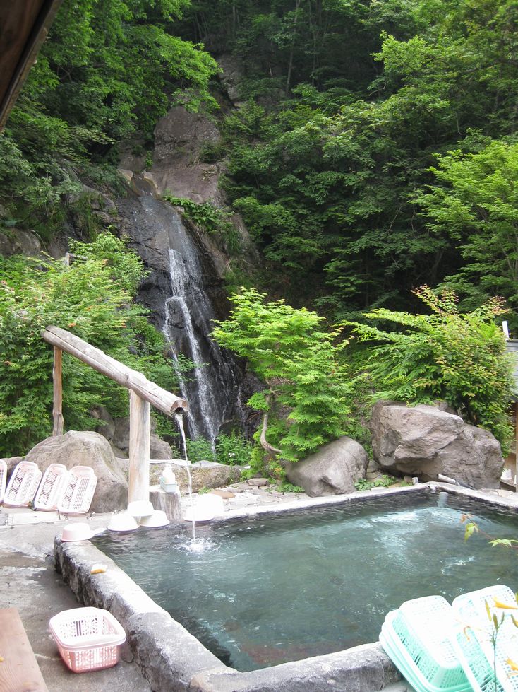 滝を見ながらの露天風呂が4つ。